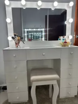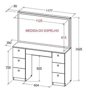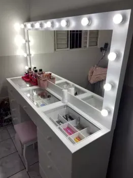 Penteadeira Ditália 7 Gav. Pe-80 Branco C/ Kit Luz Camarim